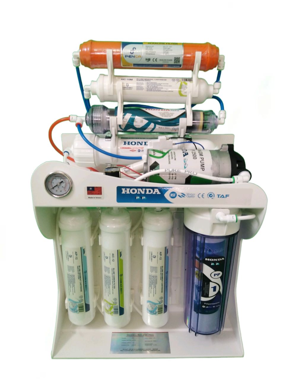 دستگاه تصفیهکننده آب خانگی مجهزبه سیستم فیلتراسیون اسمز معکوس، بروزترین و جدیدترین مدل دستگاههای تصفیهآب خانگی است. جنس بدنه این دستگاه ازفایبرمیباشد و وزنی حدود 15کیلوگرم دارد. آب شرب دارای مقادیر زیادی املاح و آلودگی است . این آلودگیها قابل رویت نیستند بلکه فقط با آزمایش تشخیص داده میشوند. بههمین علت اخیرا استفاده از دستگاهای تصفیهآب خانگی در کشورمان به یک امر ضروری مبدل شده است. چرا که آب آلوده منشاء اصلی اکثر بیماریهاست. این دستگاه مجهز به انواع فیلتر پلیپروپیلن، کربن بلاک، کربن اکتیو، ممبران، پستکربن گیاهی تایوانی و مینرال تایوانی وفیلتر قلیایی است. از مواد فیلترشونده میتوان به حذف ذرات معلق در آب، حذف کلر و طعم و بوی نامطبوع اشاره کرد. نحوه نصب این دستگاه زیر سینک بوده و قابلیت نصب به یخچال نیز برای آن وجود دارد. گفتنی است این دستگاه مجهز به عبور آب در حین قطع برق است